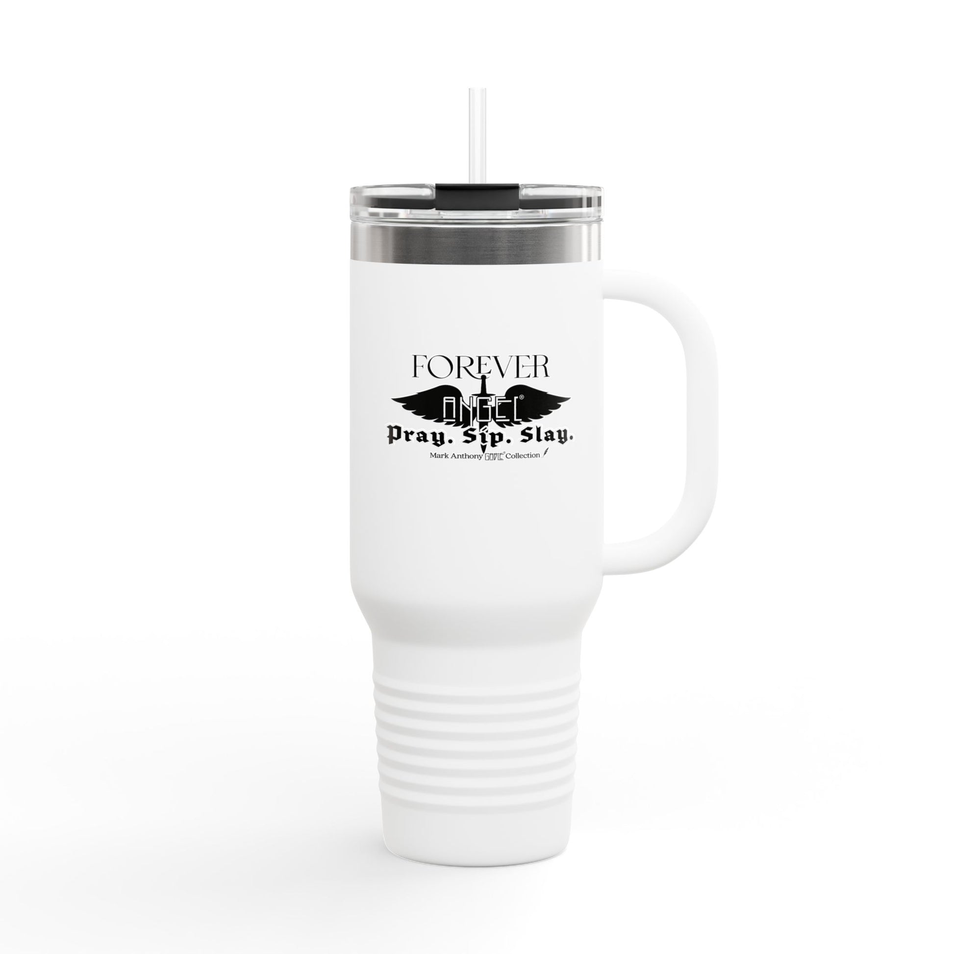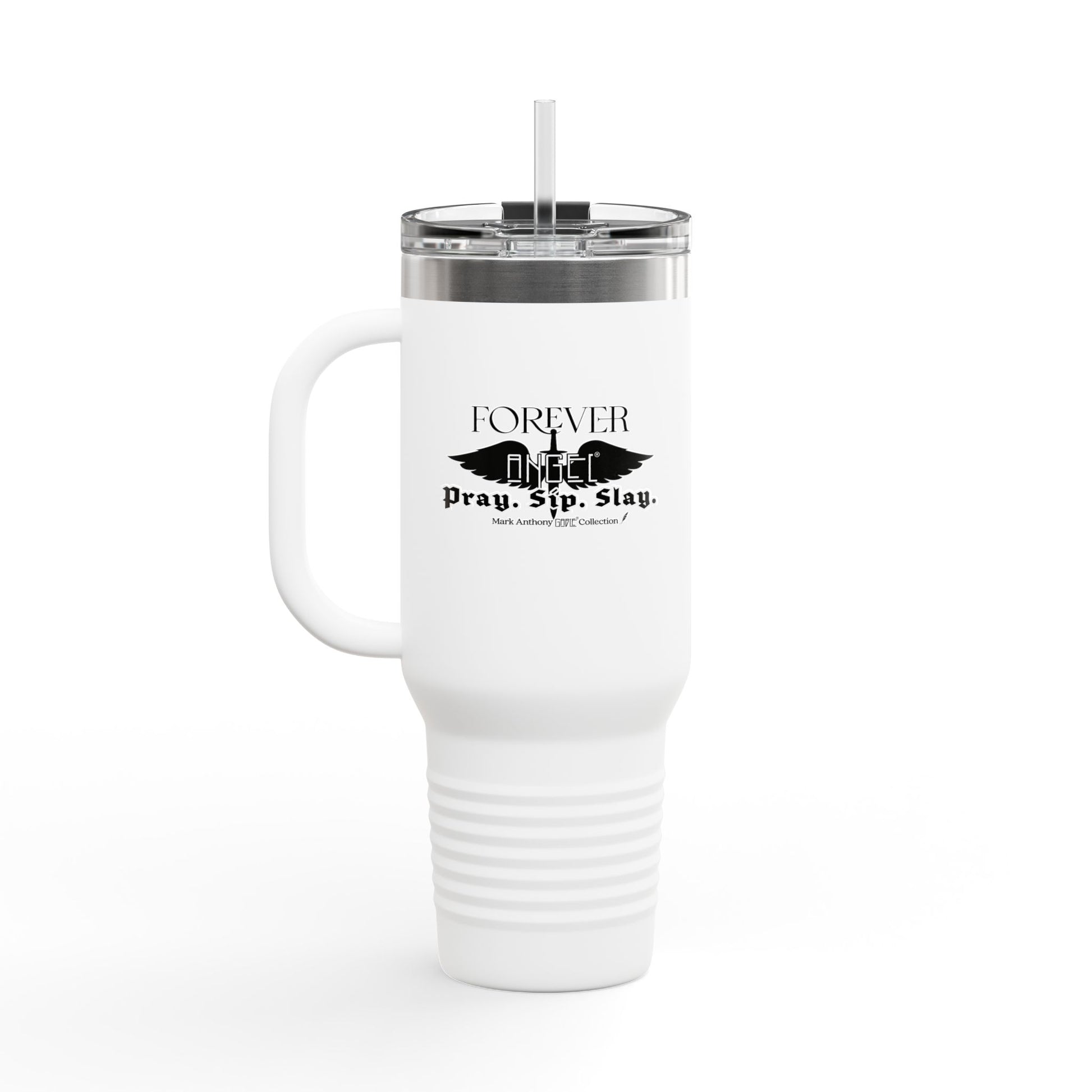 PRAY. SIP. SLAY. Black Font Edition by Mark Anthony Gable® Collection Forever Angel® Insulated Travel Mug, 40oz